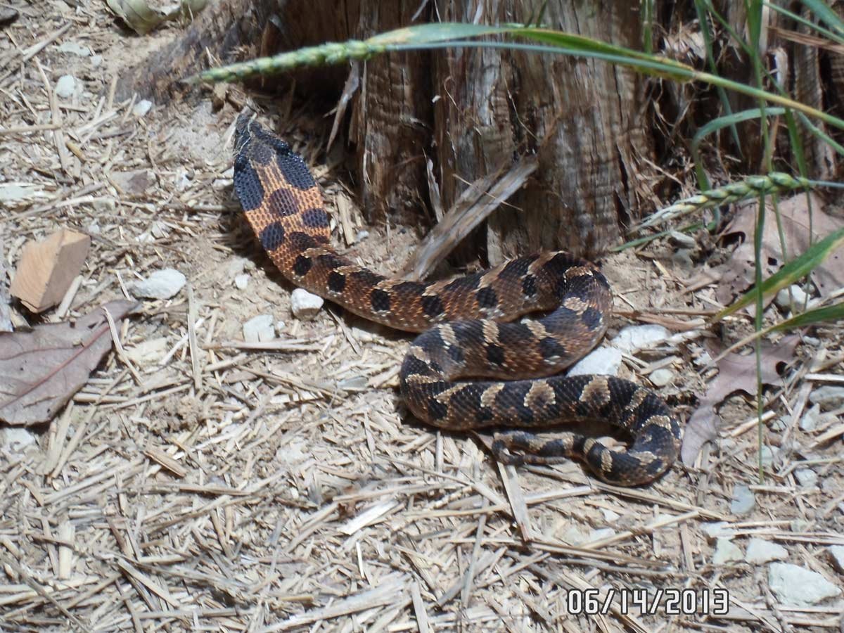 John came across a previously unseen species of snake out here recently. It was right outside his cabin and scared him pretty good as it was an eastern hog nose snake, aka "spreading adder" or "puff adder" as it puffs out it's neck like a cobra and hisses loudly. It's not poisonous and will even play dead to avoid predators, but it's certainly nothing I'd like to mess around with.