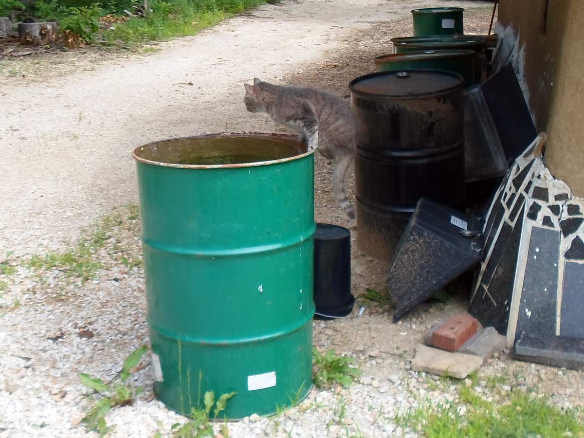 I was on the phone making plans to visit my friend Daniel in Hawaii over the winter. He just surfaced from a 7 month tour on a submarine, and we're planning on doing some sailing around the islands there when I come for a month in December. Anyway, I looked up and I saw Feist perched on the side of a rain barrel having a drink. The lip has to be half an inch wide at most. She sat there for a good 15-20 seconds after I noticed.Pretty impressive.