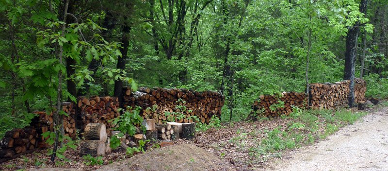 We've gathered a lot of the materials that we'll need for our projects this year. We've cut and peeled almost 40 cedar posts, salvaged lumber, and gathered scrap granite. The construction areas are all cleared out, and all of the trees we had to take out have been processed for firewood, mushroom logs, or are awaiting a turn at the chainsaw mill to be turned into beautiful boards. We now have enough firewood set aside for 3 or 4 full winters here thanks to our efficient rocket stove and super-insulated straw bale housing. As if that weren't enough, we also cleverly stacked it