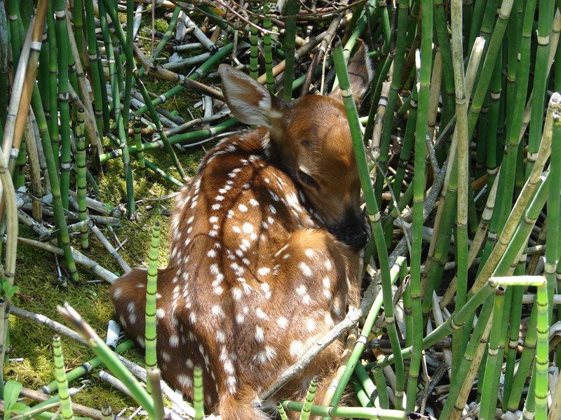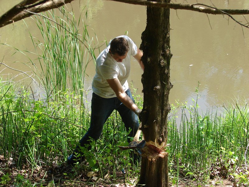 The main trees that needed to be removed from the dam have been cut down and piled up for the bonfire on the 4th. The roots can penetrate the heart of the dam and cause leaks. There's quite a few more trees that need to come out though and there's already enough wood down there for several large fires. While I was clearing one day I almost stepped on a fawn in the reeds by the lake. It was clearly scared, but just hoping that I didn't see it or would ignore it. I somehow just expect animals of that size to run, even if they're small.