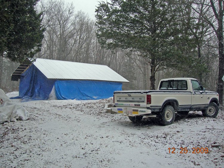 I started on it, but didn't want to hang the tarp first because it was supposed to snow and I wouldn't have been here to knock it off and make sure it didn't just collapse and tear the tarp. Even with just third of it I've done it's made a difference. I put that part up to block the prevailing winds, but I'm sure once I get the bottom done all the way around it'll make the floor a lot warmer too.
