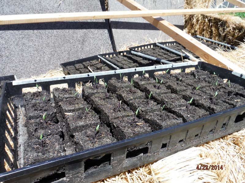 That aside, a number of the soil blocks have sprouted and though they're a little behind where they'd ideally be since I started them a little late and didn't keep them inside very much for germination, but they look healthy and had a good germination rate despite that.