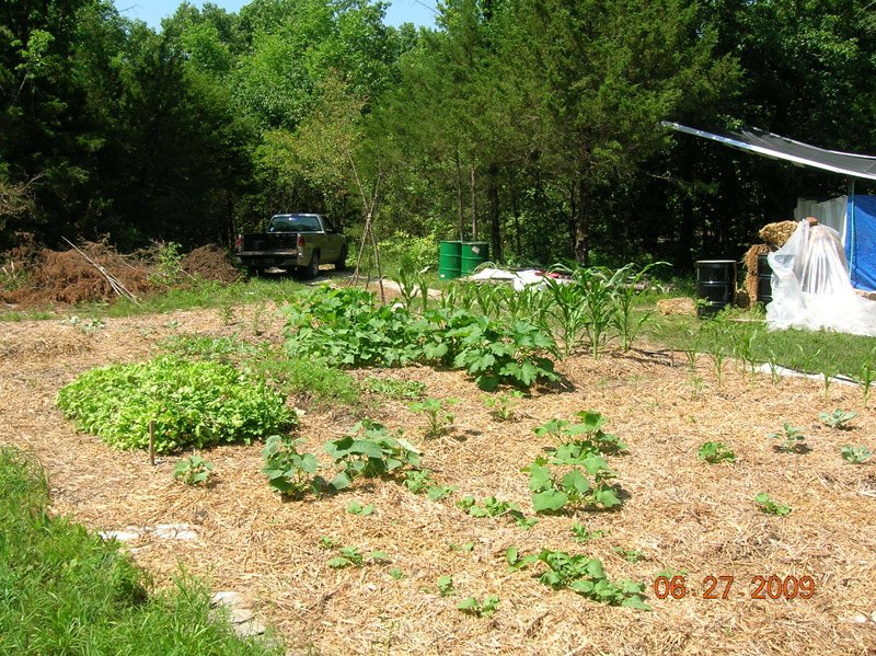 The garden has gained new life. A lot of plants that didn't look like they were going to make it, such as the beans, a lot of the transplants, tomatoes, etc, have greened back up and started growing. A few things that initially looked very promising have faded such as the onions, and the peas looked good, then looked bad, then looked like they might be getting better, and now seem to have petered out again. We're hoping that next year the manure will have broken down and be more accessible to more of the plants.