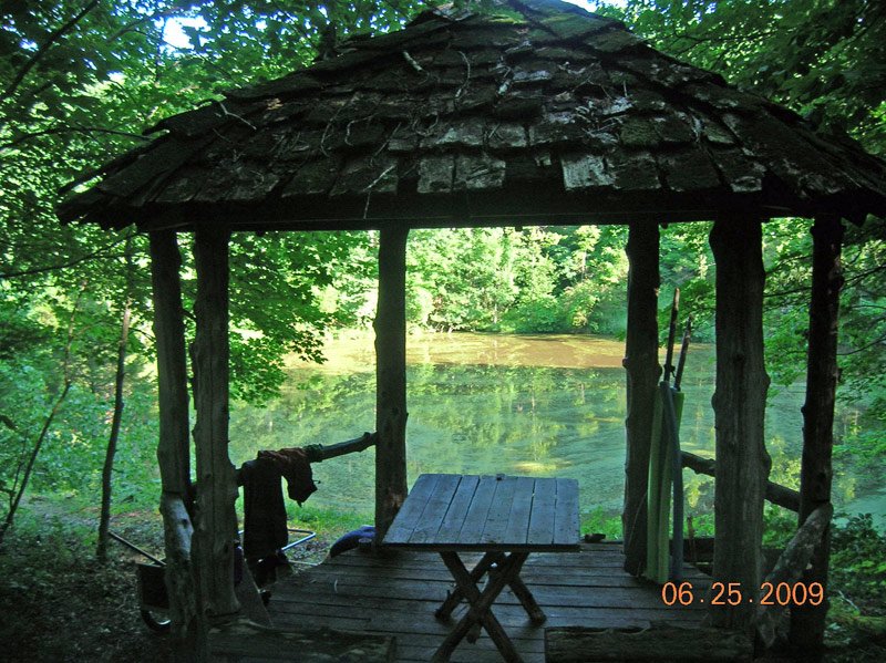 It's been oppresively hot and humid the last week, which hasn't exactly been motivational in getting work done. Liz and I have been working down at the lake cleaning up the gazebo, fixing the steps, and removing the trees from dam and along the shore blocking the gazebo view. The roots in the dam can weaken it and cause it to fail. We've also become fond of swimming in the lake. The water in the first foot or two is extremely warm, and it gets cold very quickly beneath that. At first we didn't know if we liked it or not, but it actually gives you a lot more control over the temperature than a uniformly heated swimming hole.