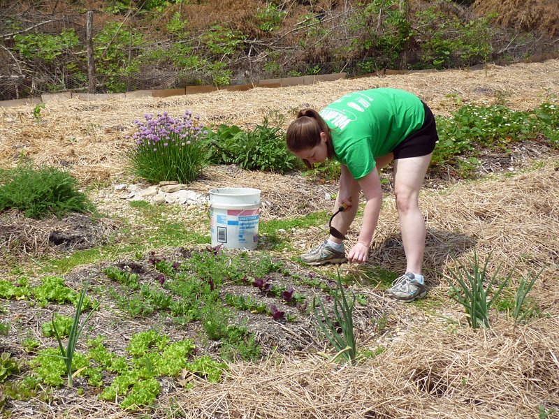 Sustain Mizzou from MU and ECO from Truman State came out for campout/work party. Unfortunately the group from Truman could only stay for a tour since they had finals looming, but it was still great to meet them. About a dozen people camped out, cooked veggies and marshmallows over the fire, and basically had a nice party.