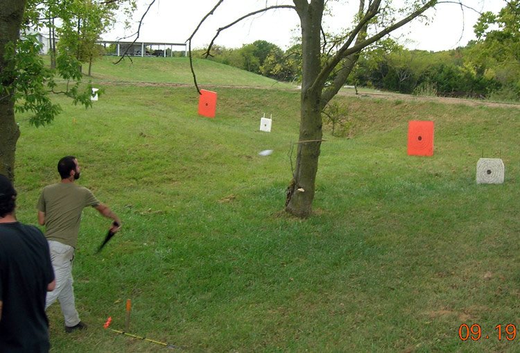 Today we took a brief break from everything and went to a "Knapp-In" in Booneville, MO about an hour away. Justin and Melainia, our friends from Fulton invited us out. Justin knapps flint and makes his own spears, at'latls, darts, arrows, bows, etc. It was really interesting watching the people knapp arrowheads and knives. Justin participated in the at'latl contest. For those that don't know, an at'latl is a deviced used to essentially extend the length of ones arm allowing you to throw a spear or dart much harder and farther. Although he's technically new at the contest throwing, he cleaned the floor with all of the rookies, myself included, although to be fair it was only my first time to ever try to throw one at all. Here's a video of Justin hurtling a dart with an at'latl.