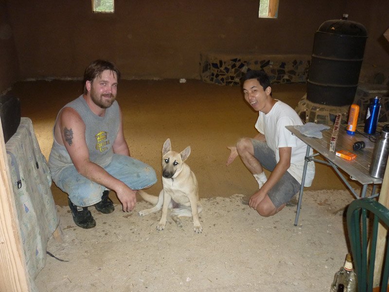 John, Jesse, and I finished putting in the base layer of the earthen floor last week(clay and rock). It will probably take a month to dry, and so during that time we'll be working on the porch area. The wall on that side is not well protected from the weather until it gets built so it's a priority. We've already done some prep work, prepared the back wall and cut and cleaned the cedar support posts.