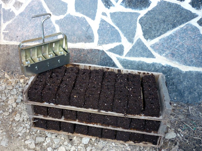 This is my second year using soil blocks to start transplants from seed. A soil blocker allows you to press soil blocks out of a sort of potting mix specially made to hold together on it's own. The benefits are that no plastic trays, which inevitably breakdown and make a mess, are needed. Biodegradable pots made out of peat or newspaper is a good option, but another reason makes soil blocks tempting.