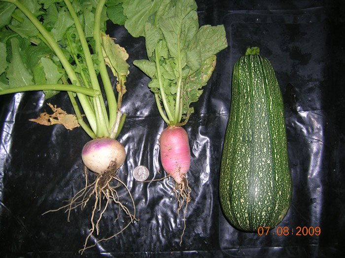 Speaking of full bellies our garden is really starting to produce. Corn is starting to develop, turnips and beets are ripe for the picking and the squash and zucchinni are in full swing. One problem I've just noticed since getting back from our 4th of July trip is that some of the squash and zucchinni are rotting on the blossom ends. I've done some research and it appears to be a calcium deficiency which is easily solved by adding a little epsom salt mixed with water. I hope that does the trick.