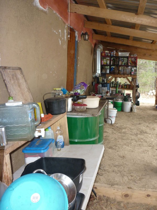 Also thanks to the efforts of the new volunteers, we've now got the kitchen moved out onto the porch. The new layout gives a lot of space for prep, serving, and dishes. The dishes are especially easier since you don't have to go far to fill up the water container or dump the dirty water.