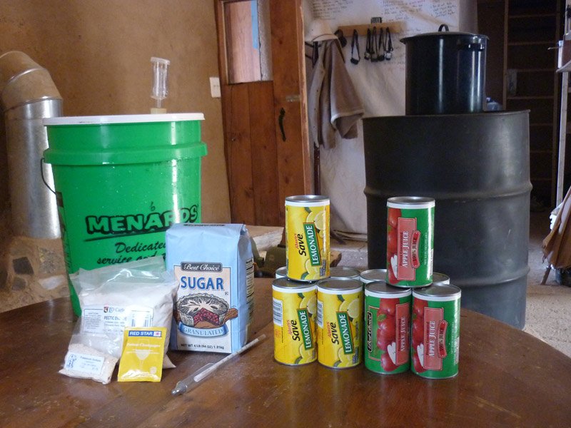5 cans6 cans frozen lemonade concentrate w/o potassium sorbate5 cans4 cans frozen apple juice concentrate w/o potassium sorbate- 3.5lbs table sugar