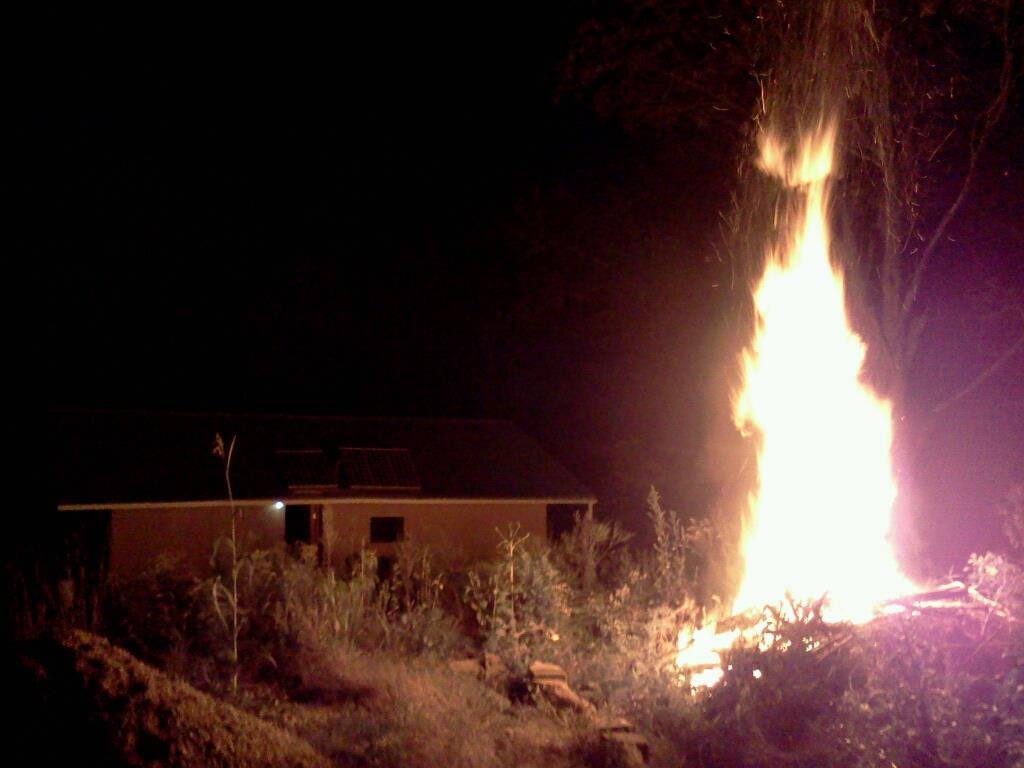 Since the chill we stacked strawbales on the roof of my camper, and created a small wall around the bedroom for insulation. It has helped noticably, especially on the hotter days when it stays much cooler in there. I hope it will keep the heat inside this winter too.Its going to be 36 degrees tonight, it should be an excellent test to see if I will make it all winter. The camper has heat but...even if we finish the solar upgrade, I'm not sure we can supply the electric blower through the winter. What an unusual year of weather. Since it just rained and it was cold last night, we decided to have a campfire.