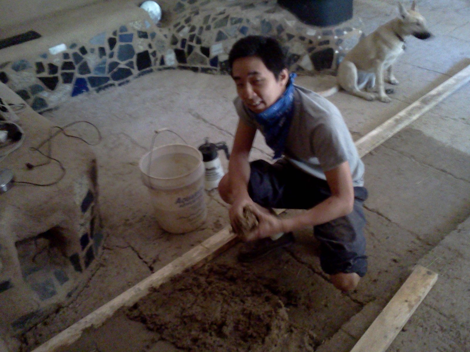 As soon as Caitlin left, we welcomed 3 new visitors. Dustin, Janet and Oatie the quaker parrot. Everone helped pour more earthen floor and sift clay on their first day. The second night is looking pretty chilly.