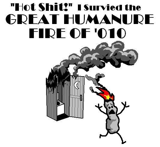 One point of excitement was when we all 3 came back with bunches of brush to find flames leaping from the humanure pile which was maybe 20 feet away from the fire. It was amazing how quickly the pallets caught on fire as well, and putting the whole thing out wasn't easy with the aforementioned lack of water. It was tempting to stomp on it, but it would be the equivalent of stomping out a giant flaming bag of poop on your doorstep. Justin made this excellent graphic which is certainly t-shirt worthy should the opportunity arise.