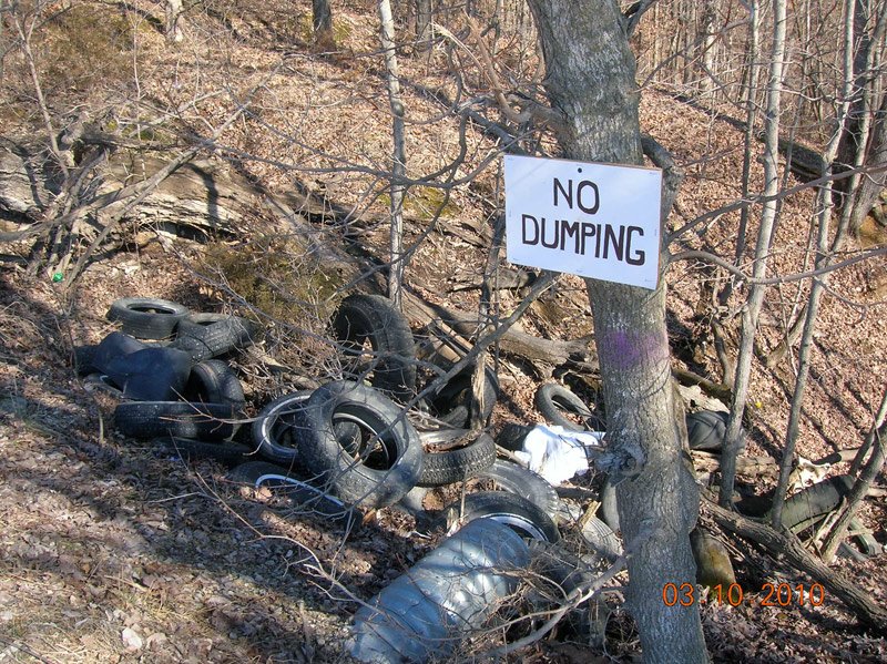 I also picked up some trash along the road with some help from a friend last weekend. I noticed that people had still been parking at the driveway to the old cabin and littering it with more beer cans and bottles since I cleaned it up last year and posted the "No Trespassing" signs. Clearly they didn't get the message so I lugged some of the 30 or so old tires that someone graciously dumped in the old root cellar and placed them as a barricade across the driveway entrance.
