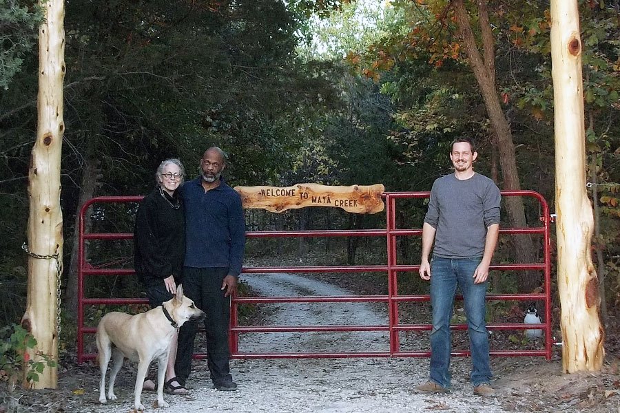 Sydney and I felled a couple of large cedar trees that blocked a significant amount of sunlight on the solar panels. We trimmed them up and peeled them, then a group of visiting AmeriCorps volunteers helped me haul them down to the end of the driveway where I'd dug two large holes for them. A couple weeks later my mom and stepdad helped me raise and set the posts and attach a gate. Eventually I'll put a wooden cross piece attaching the posts with "Maya Creek" on it.