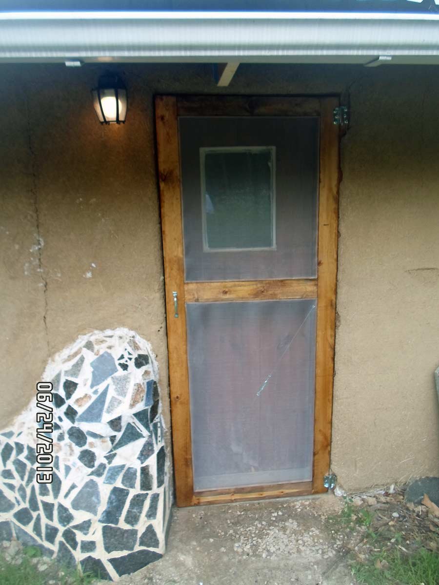 I built a custom screen door for the common house earlier in the summer which was great for opening up the place to cool it down at night without letting all of the bugs in. Eventually the back porch will get screened in and we can leave the back door open too and get some cross ventilation.