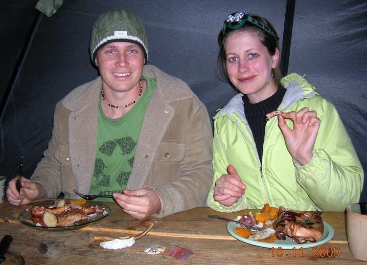 We cooked the meat over the fire and served it with some boiled carrots and potatoes from the garden. The guinea meat was somewhat darker than chicken meat and had a slightly gamy flavor, which was actually very enjoyable. The leg meat was a little chewier, but again, it was enjoyable. I say that not just because it was personally satisfying to have raised our own meat, but because I objectively thought it was tasty.